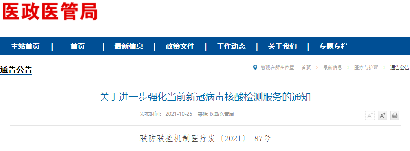关于进一步强化当前新冠病毒核酸检测服务的通知